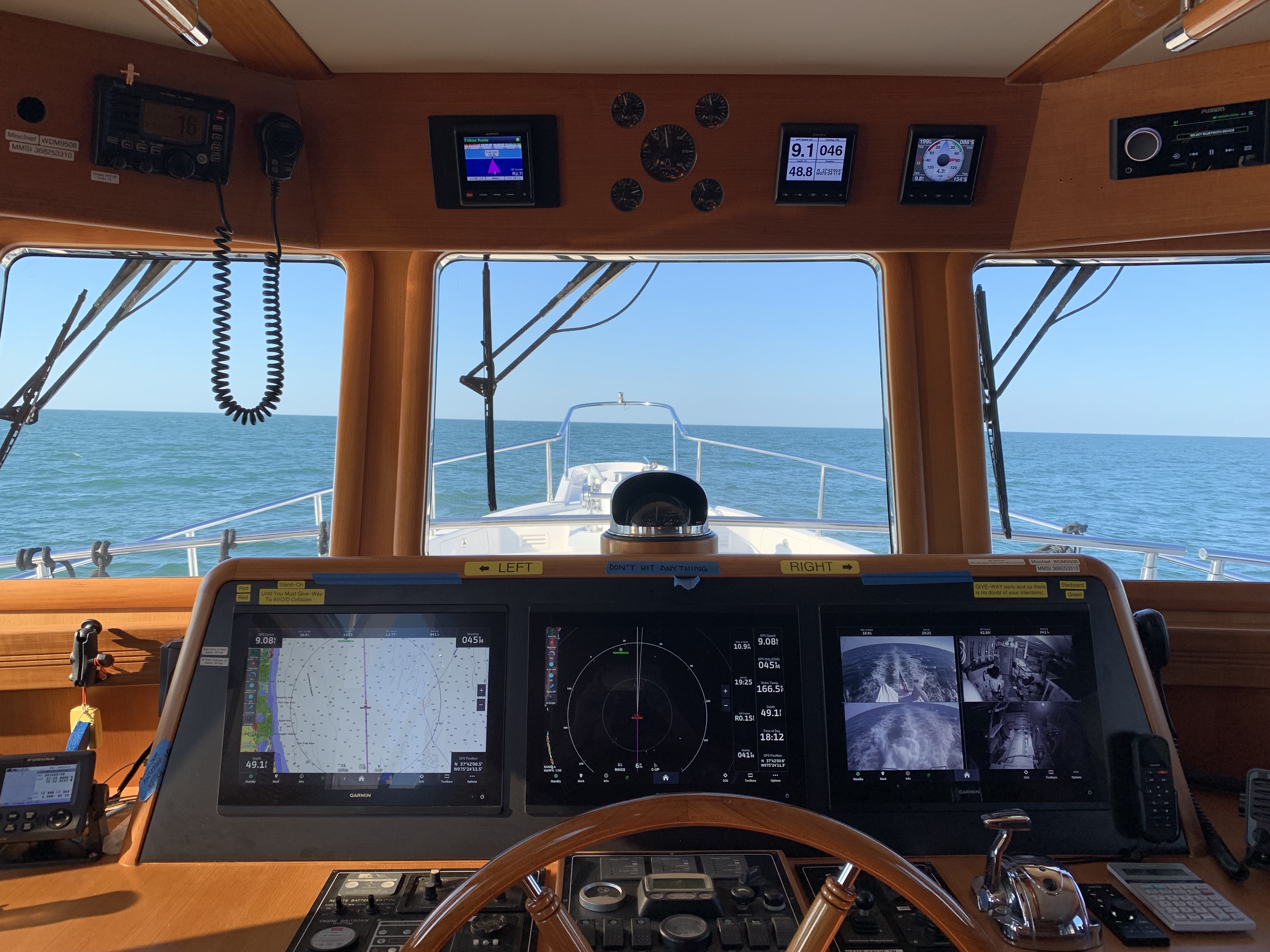 A glass bridge (pilothouse & flybridge) including 5 Garmin 17” displays.