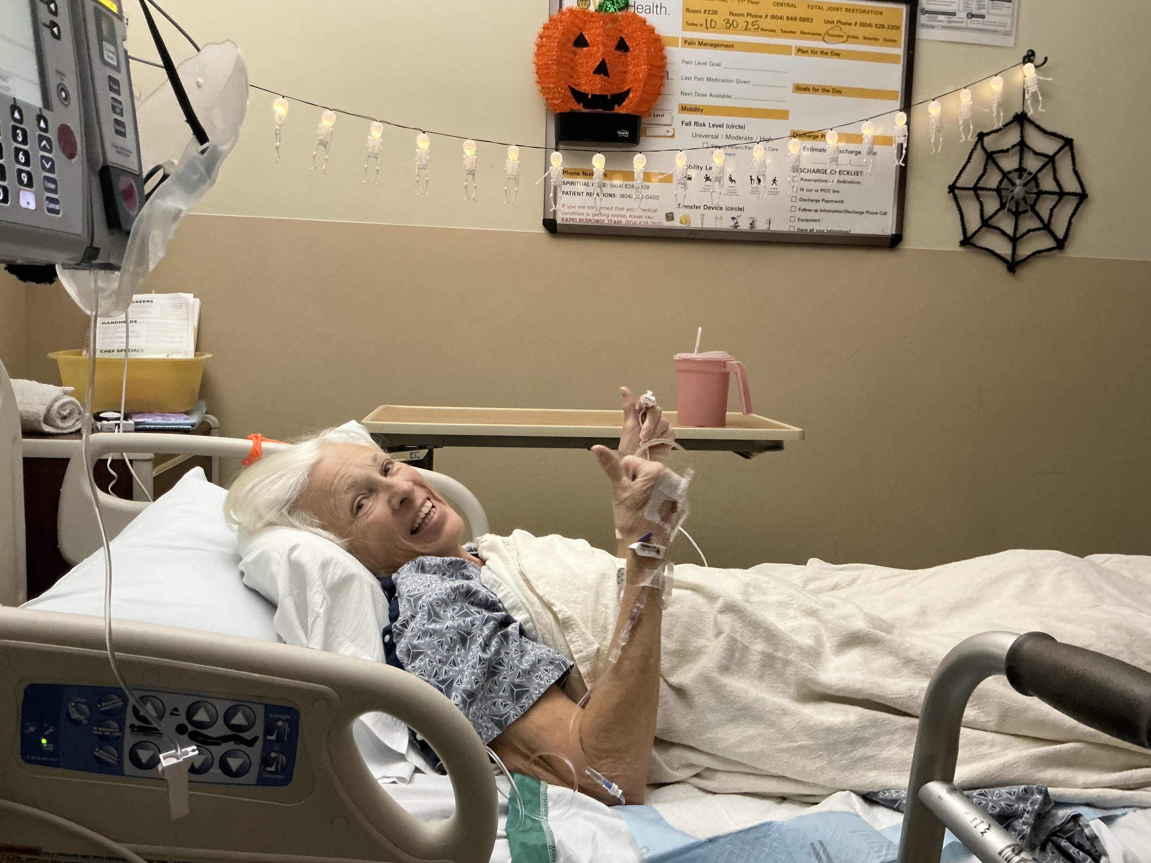 Good news here also - We are in VCU Hospital in Richmond where Terry is recovering from bilateral knee replacement surgery early Thursday morning. Complex surgery and only second time in 2025 it was done at this busy teaching hospital. She got on her feet yesterday and walked three times today with a walker, impressing all the MD’s, RN’s, PT’s, OT’s and Aides. Tough Lady! Thank God for narcotics! But I am getting cranky - three nights on a couch in her room for one who deserves “Prince and the Pea” treatment is about all I can stand. I need my king size bed and the river sounds outside my window, not I-95 traffic!